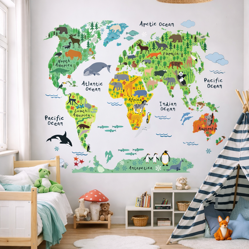 Vinilo Decorativo Adhesivo Mapa De Animalitos Impresión
